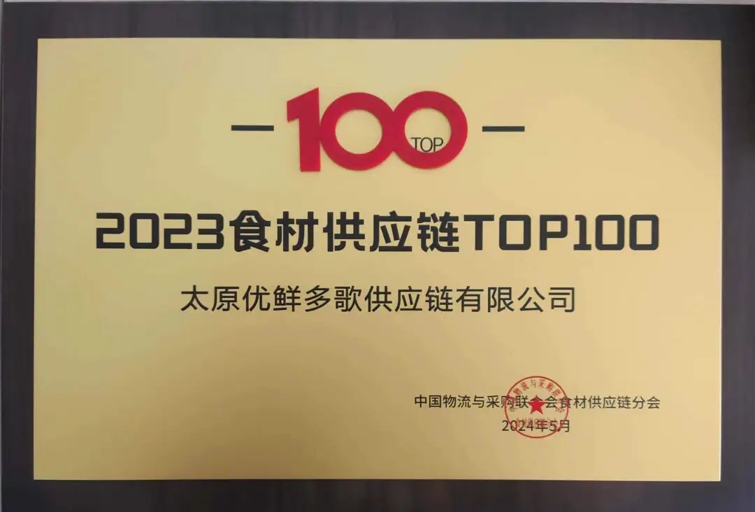 喜报|优鲜多歌荣登“2023食材供应链TOP100”榜单